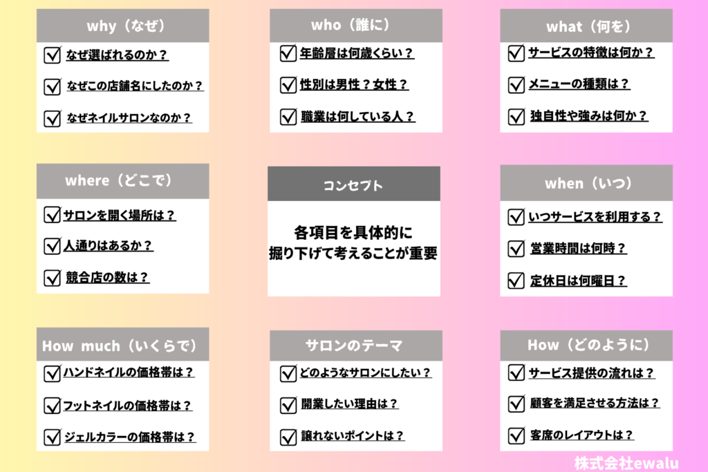 ネイルサロンを開業する際には、お店の土台となるコンセプトを設計する必要があります。